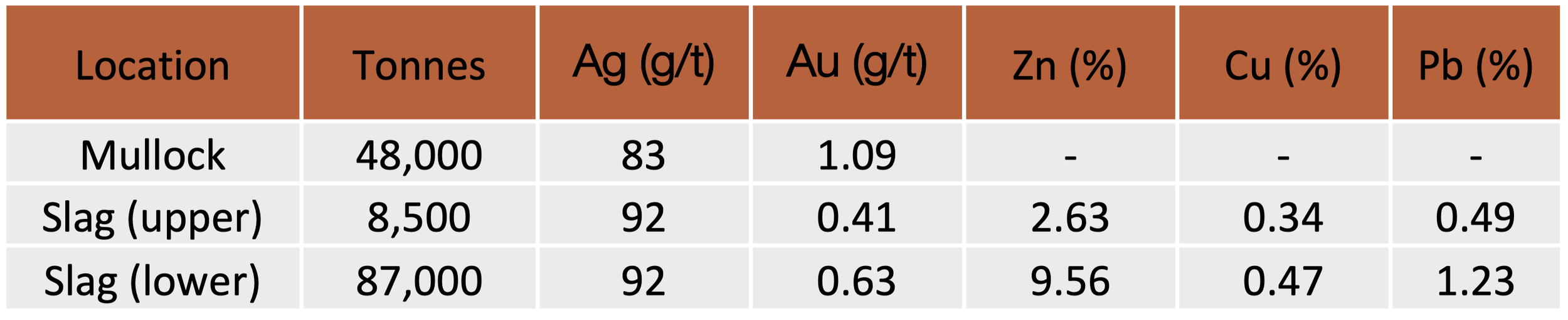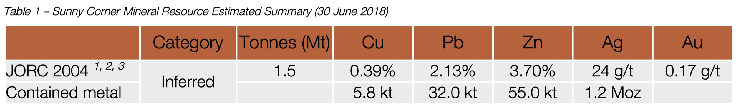 Non JORC estimates have been conducted within the slag and mullock heaps lying on the surface of the historic Sunny Corner mine.
